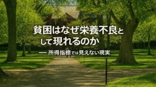 SDGsにおける栄養指標の評価は、平均値の改善を示す一方で、現場の不平等や女性の負担を見えにくくしているという指摘がある。日本語サマリーSDGsにおける栄養指標は、多くの国や地域で「改善」を示してきた。しかしその数値の背後で、現場の不平等、女性の負担、選択の自由の欠如が十分に捉えられてきたとは言い難...